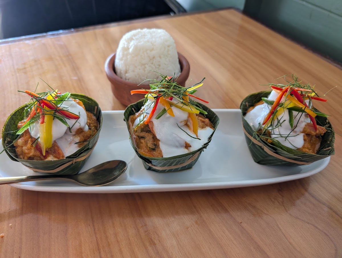 For those who prefer something more savory, Hor Mok Bai Tong is a flavorful Thai fish curry dish that's rich, aromatic, and served in a banana leaf bowl. Another must-try is the Kor Moo Tod, a crispy fried pork dish that's packed with flavors and pairs wonderfully with a side of rice or dipping sauce.